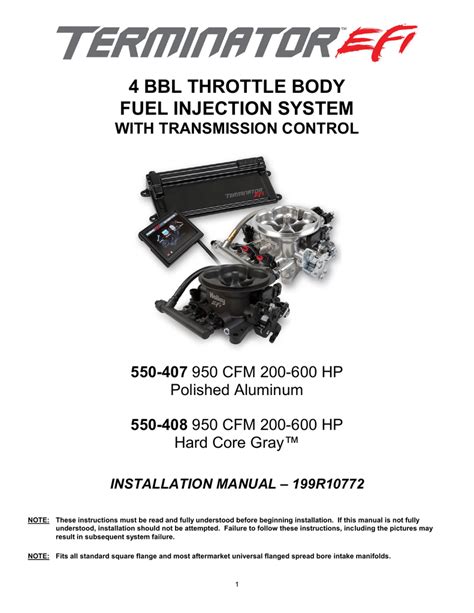 Web Holley Performance Products Has Written This Manual For The Installation Of The Terminator X™ Tbi Fuel Injection System.